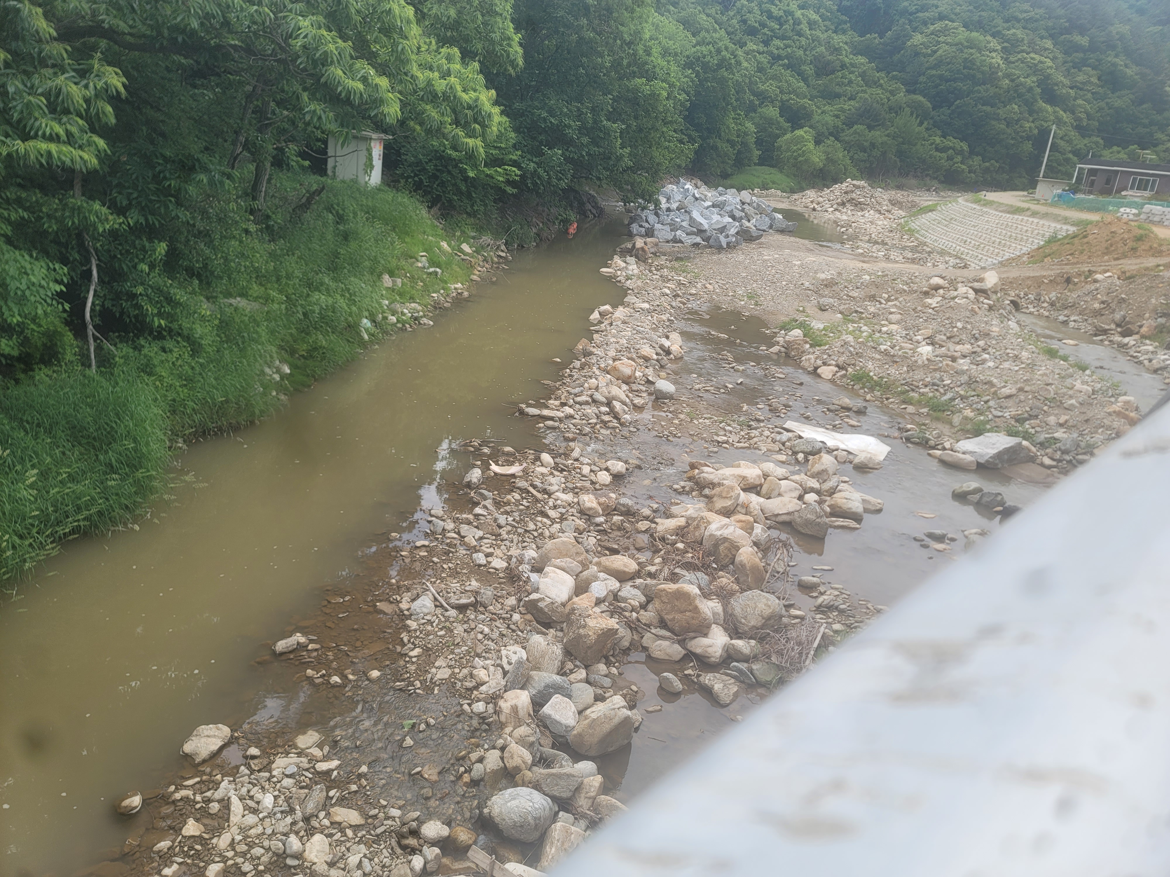 그야말로,용문산 으로 부터 내려오는 '자연의 청정 개천' 하나가 사라지는 순간이며,이 개천 길을 시멘트, 흙과 돌들로 파괴하는 데에 무려 270억의 시민혈세가 쓰이는 셈ᆢ
