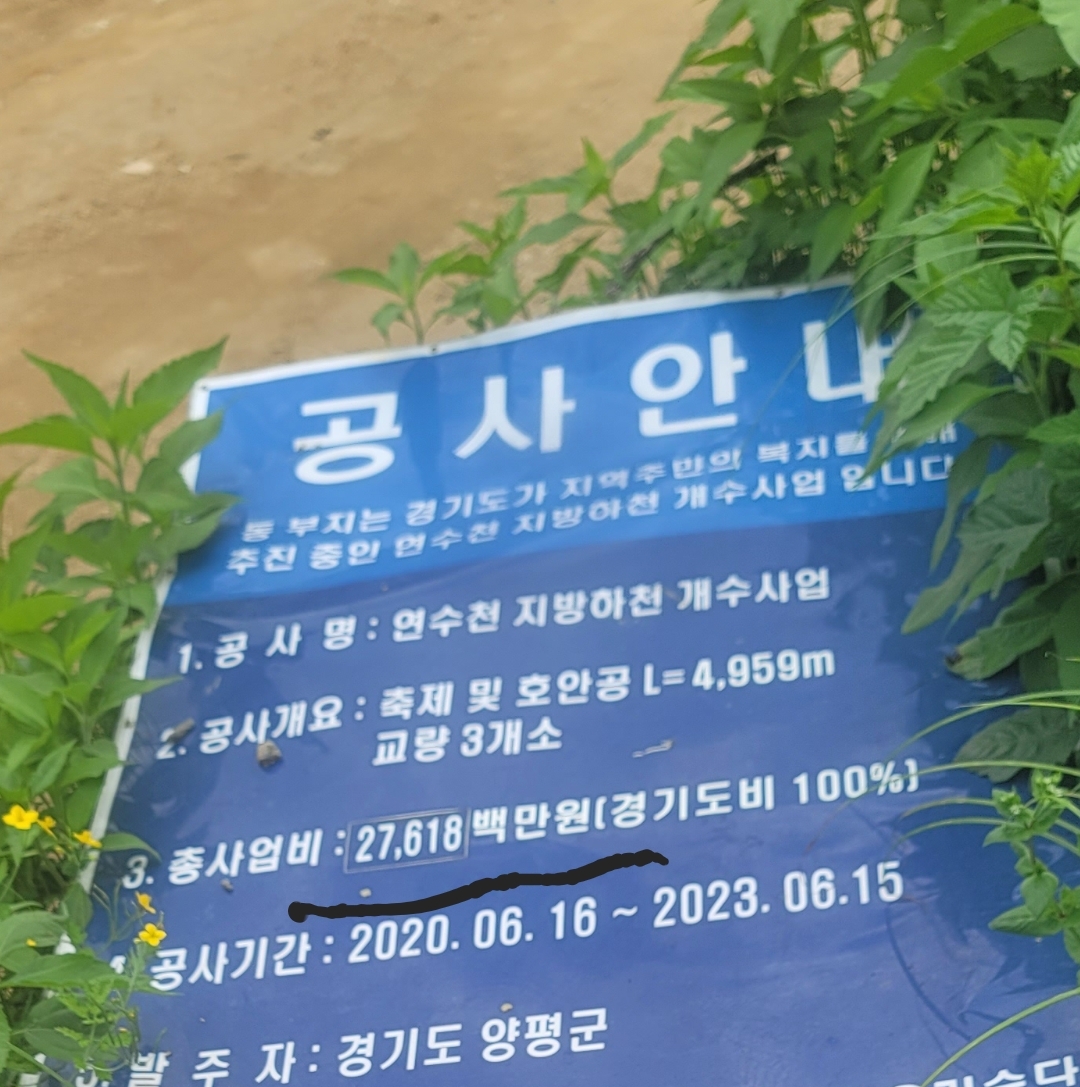 연수천 치수 사업비규모는 무려 270억원대 (27억 이 아니고?! 땅 파고 돌 꽂고 벽 쌓는 단순한 공사인데,그런 천문학적인 돈이 든다고? 나머지 돈은 다 어디에 쓰이나? )